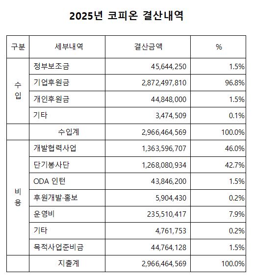 코피온은 1999년 설립된 국제개발협력단체로서 재정의 80%이상을 사업비로 지출합니다.